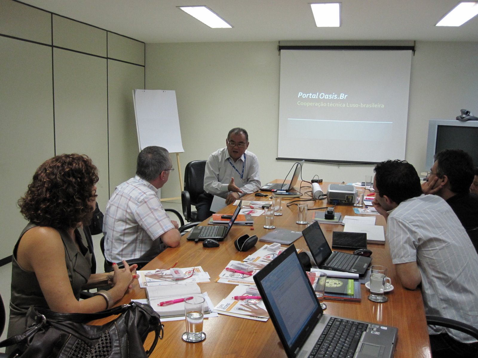 Para além da partilha de informação detalhada sobre a situação e as iniciativas relacionadas com o Acesso Livre e os repositórios em Portugal e no Brasil, esta reunião tinha como objectivos discutir e definir a forma como deverão ser concretizadas as acções constantes no Memorando de Entendimento já referido e definir o plano de trabalho, calendário e metodologias do projecto. Participaram na reunião em representação do RCAAP João Moreira (FCCN), Eloy Rodrigues (U.M. – Serviços de Documentação), José Carvalho (U.M. – Serviços de Documentação) e Miguel Ferreira (U.M. – Keep Solutions). Do lado do IBICT estiveram presentes Hélio Kuramoto (coordenador geral de Pesquisa e Manutenção de Produtos Consolidados), Bianca Amaro de Melo (coordenadora dos laboratórios de Metodologias de Tratamento e Disseminação da Informação) , Marisa Brashcer (professora do Departamento da Ciência da Informação da Universidade de Brasília) bem como outros técnicos do Instituto.