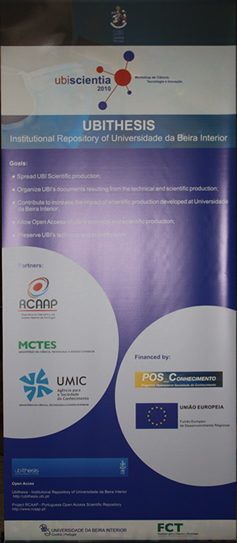 O acesso livre, significa, pois, uma mudança de paradigma no mundo universitário, favorecendo uma substancial alteração no processo de comunicação, em que o resultado da investigação desenvolvida passou a ter uma nova forma de ‘polinização’. Quais Lusíadas, desbravando novos saberes, mas onde também não faltam velhos do Restelo. O Ubithesis esteve presente na Primeira Mostra de Ciência da UBI, que teve lugar no mês de Junho, onde foi possível aferir um repositório Web de todas as publicações científicas produzidas pelos investigadores, difundindo assim os conhecimentos produzidos na comunidade ubiana, em diferentes áreas do saber.