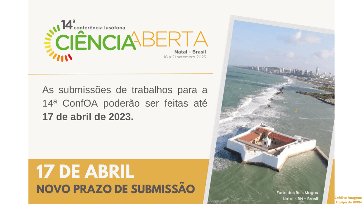 Foi adiado até ao próximo dia 17 de abril o prazo de submissão de trabalhos à 14ª Conferência Lusófona de Ciência Aberta (ConfOA). Este ano a conferência é acolhida pela Este ano, a ConfOA é acolhida pela Universidade Federal do Rio Grande do Norte nos dias... Continue Reading →